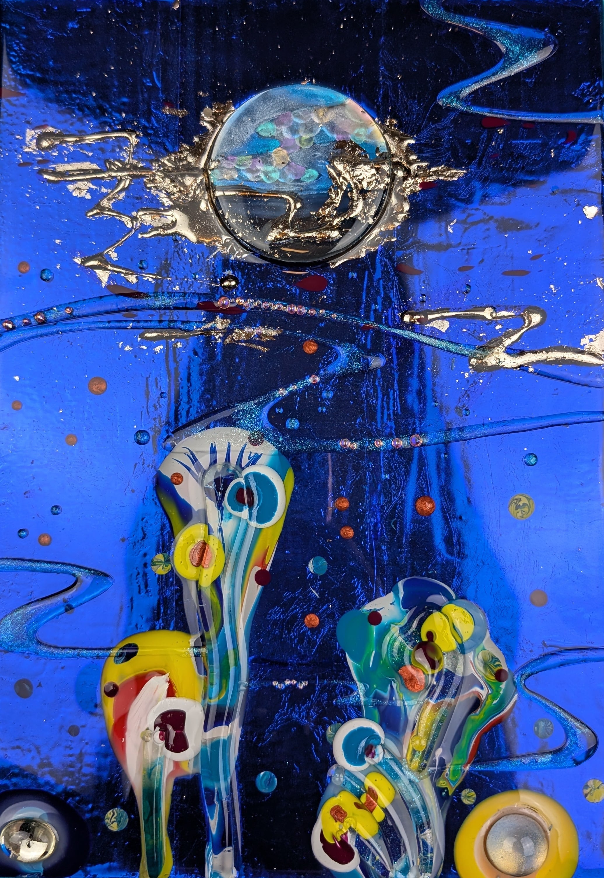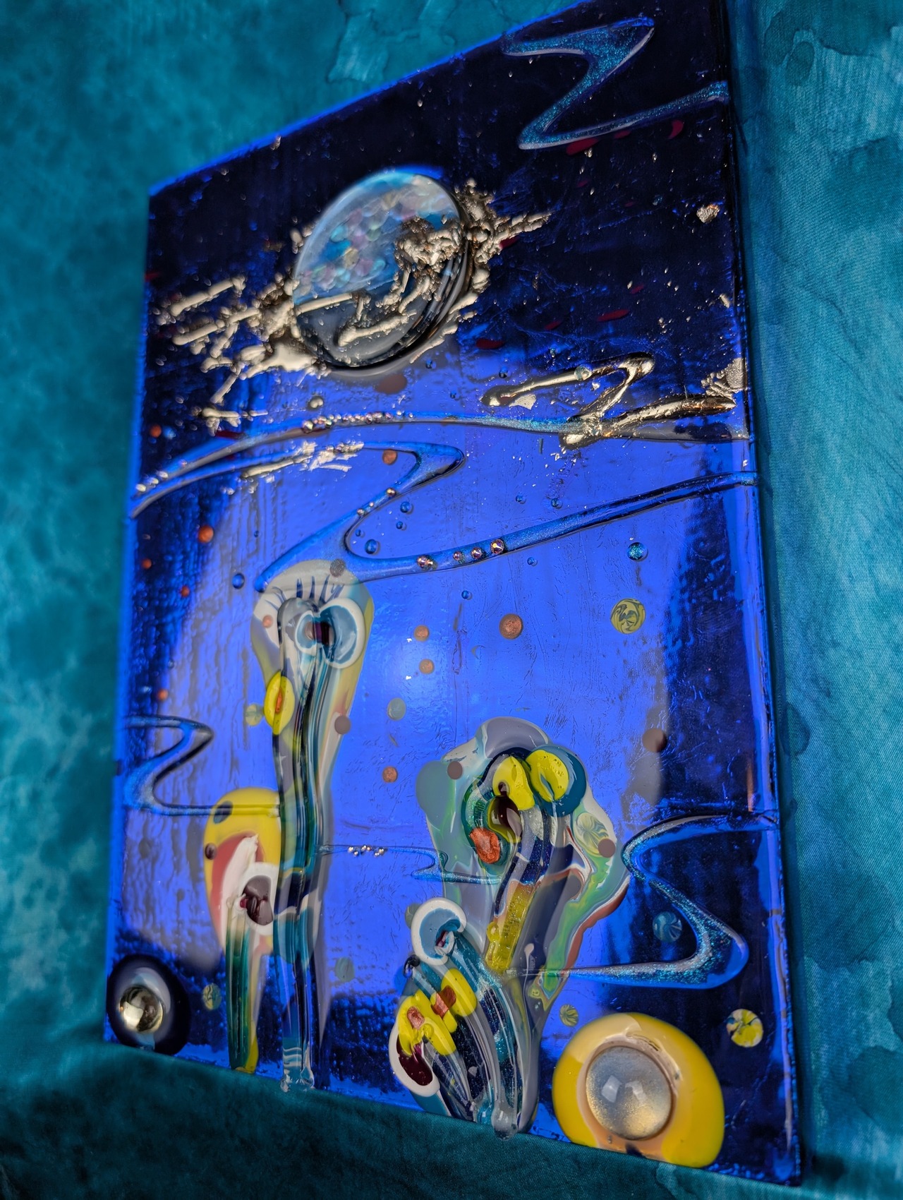 ■1963年生まれ 会社員時代の46歳から絵を描き始め、56歳で前職を退職し、アート作家として独立 月乃カエルの作品は、オリジナルのデジタルイラストをシャドーボックスのように積み重ね、 透明樹脂のレジンでコーティングして、ネイルアートのように仕上げたアートです。 デジタル感とハンドメイドによる階層化のアナログ感、未来的でありながらノスタルジック、 工作のようで絵画的、他にはないアート作品を是非ご覧ください。