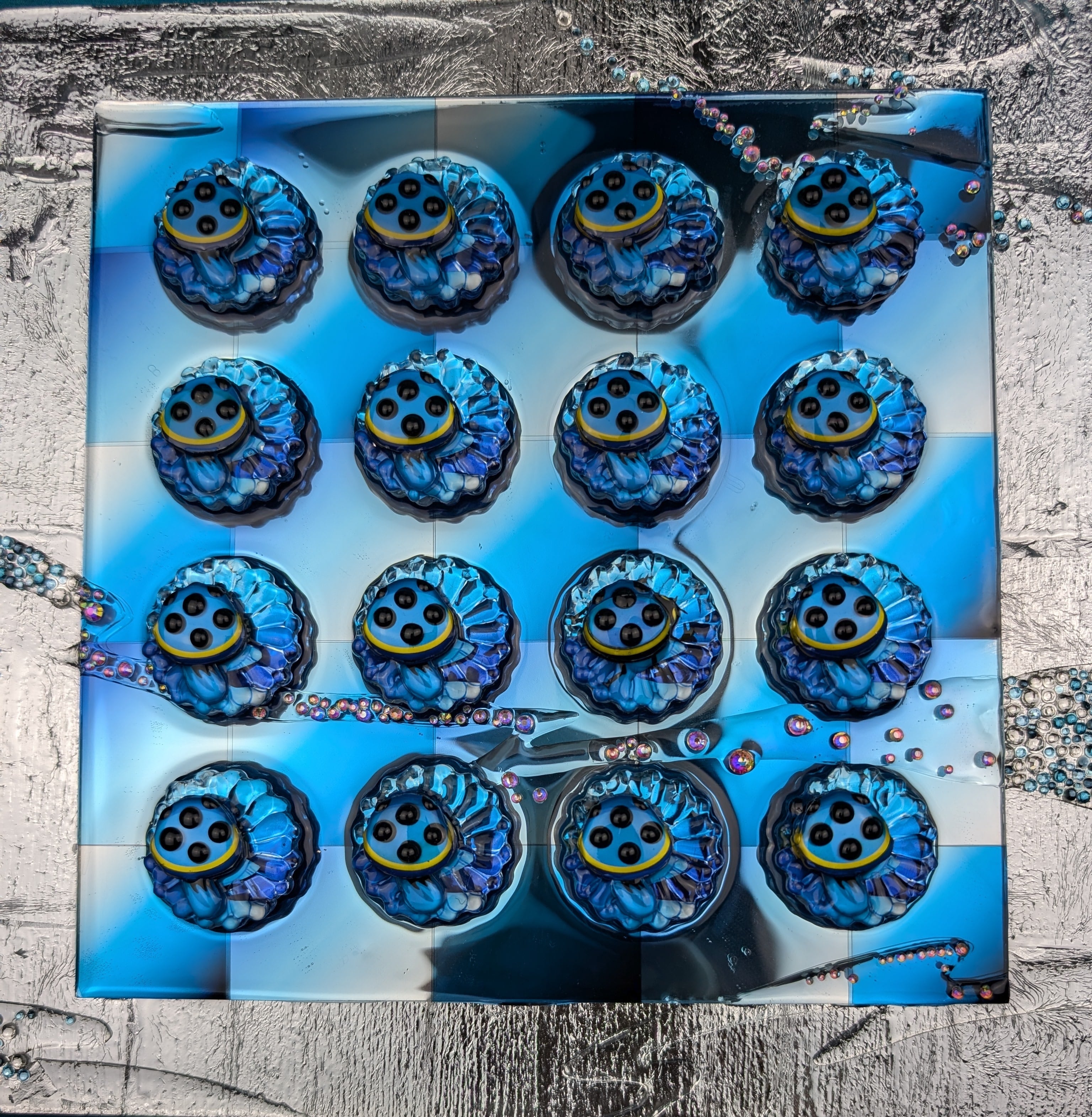 ■1963年生まれ 会社員時代の46歳から絵を描き始め、56歳で前職を退職し、アート作家として独立 月乃カエルの作品は、オリジナルのデジタルイラストをシャドーボックスのように積み重ね、 透明樹脂のレジンでコーティングして、ネイルアートのように仕上げたアートです。 デジタル感とハンドメイドによる階層化のアナログ感、未来的でありながらノスタルジック、 工作のようで絵画的、他にはないアート作品を是非ご覧ください。